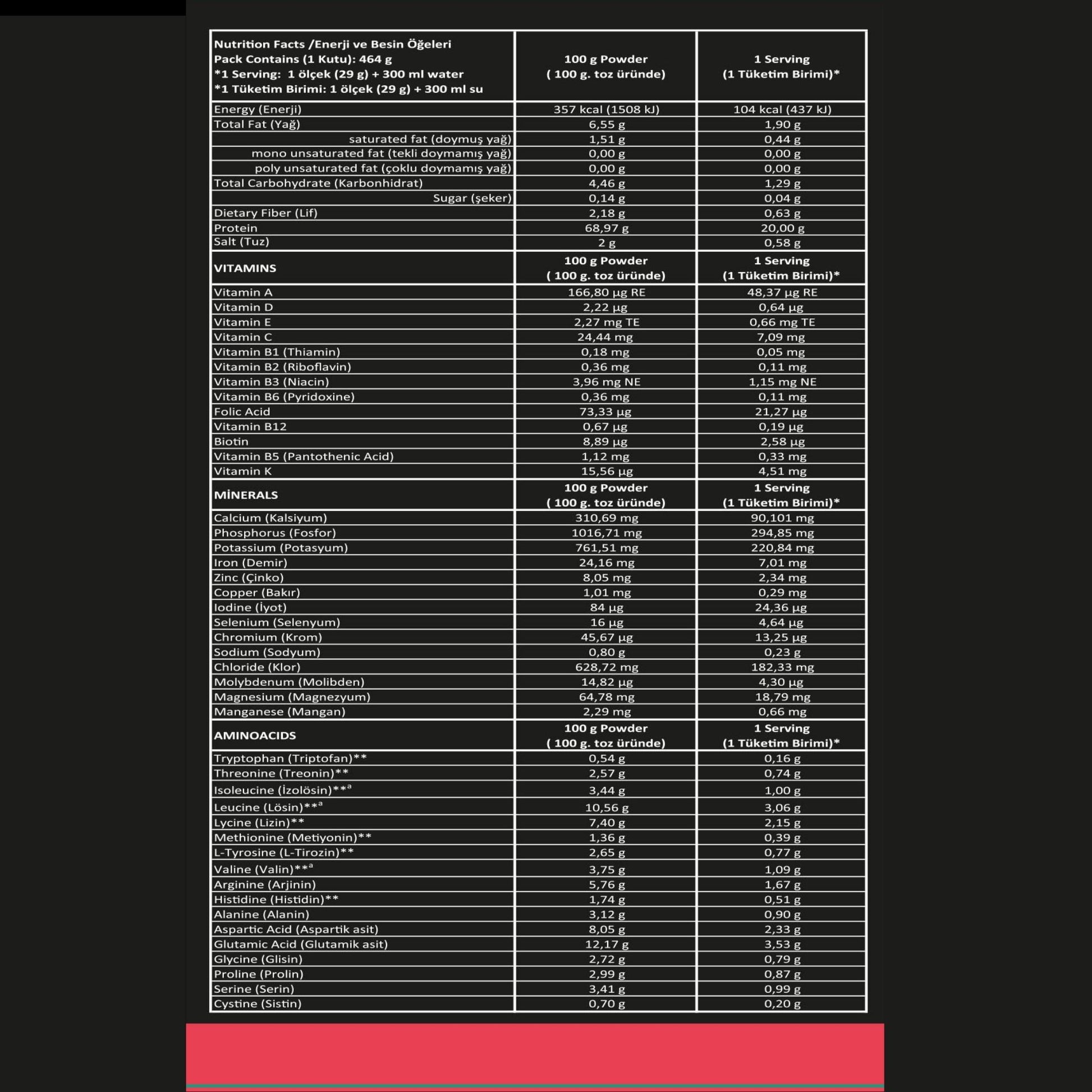 🔹 High protein & amino acid support: 20 g protein, 9.7 g EAA, 5.06 g BCAA in each serving